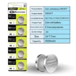 Pila de botón Litio CR2477 Koonenda (24 × 7.7 mm, 3 V, 1000 mAh). Compatible con DL2477, ER2477 y GPR2477. Perfecta para relojes, medidores y equipos de alta demanda.en CR-XXXX