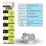 Blister de 5 pilas de botón CR1225 Koonenda (3 V, 52 mAh) de litio, compatibles con DL1225, ER1225 y GPCR1225. Ideales para relojes, mandos y dispositivos electrónicos portátiles.en CR-XXXX