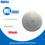Pila botón recargable ML2032 MAXELL 3V. Tecnología Li-ion. Compacta, duradera y perfecta para sistemas electrónicos de bajo consumo.en Recargables