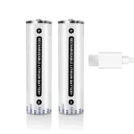 Pack de 2 pilas AAA 1.5V recargables USB-C. Alta compatibilidad, carga rápida y ciclo de vida largo. Ideal para dispositivos electrónicos compactos.en Recargables