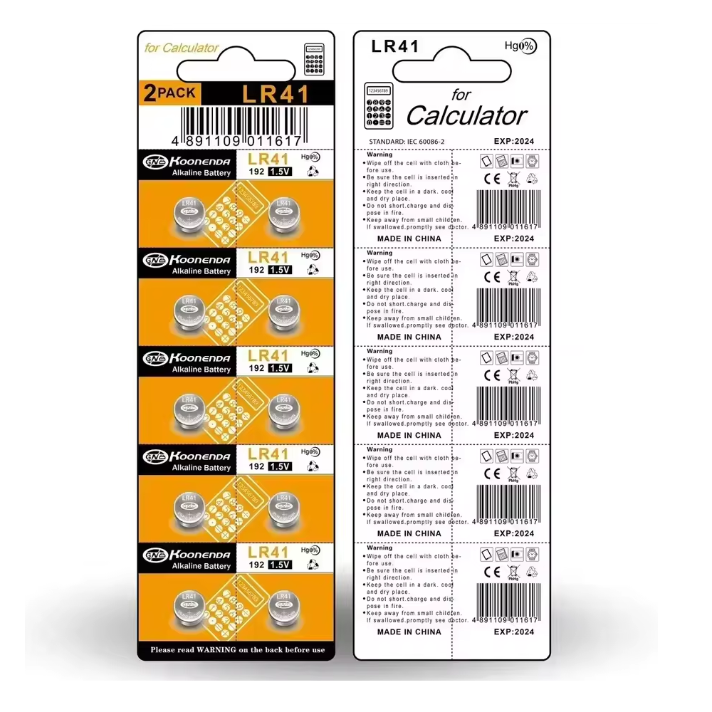 Pack de 10 pilas botón AG3 de 1.55V de la marca Koonenda, pensadas para ofrecer una fuente de energía constante, segura y fiable en dispositivos electrónicos de pequeño tamaño. Estas pilas también se conocen como LR41 o SR41, y son altamente compatibles con referencias como 192, 384, 392, 392A, CX41, G3, L736, LR736, SR41SW, SR41W y V3GA.