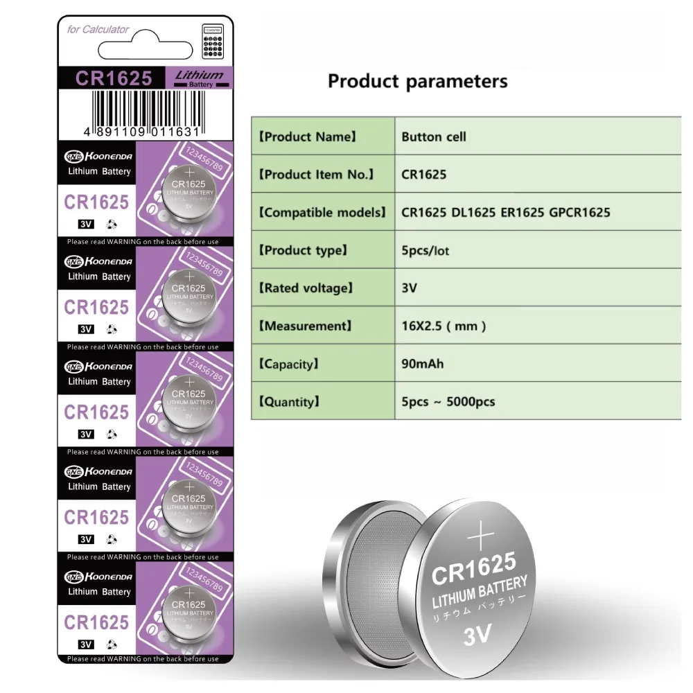 CR1625 Koonenda – Blister de 5 Pilas de Botón Litio 3 V