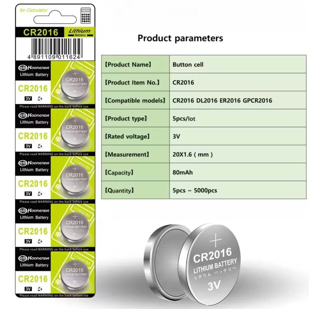 CR2016 Koonenda – Blister de 5 Pilas de Botón Litio 3 V