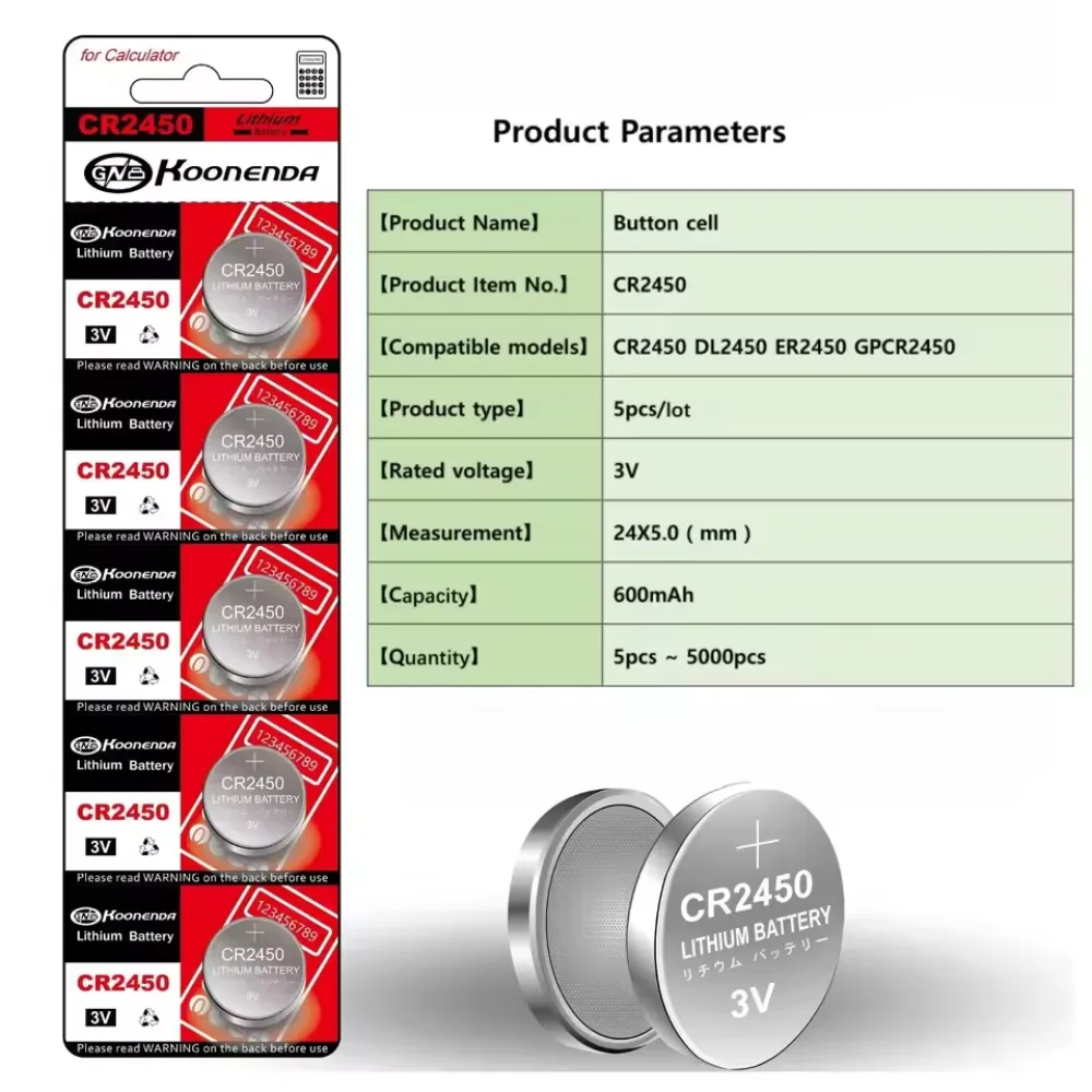 CR2450 Koonenda – Pila de Botón Litio 3 V (1 unidad)
