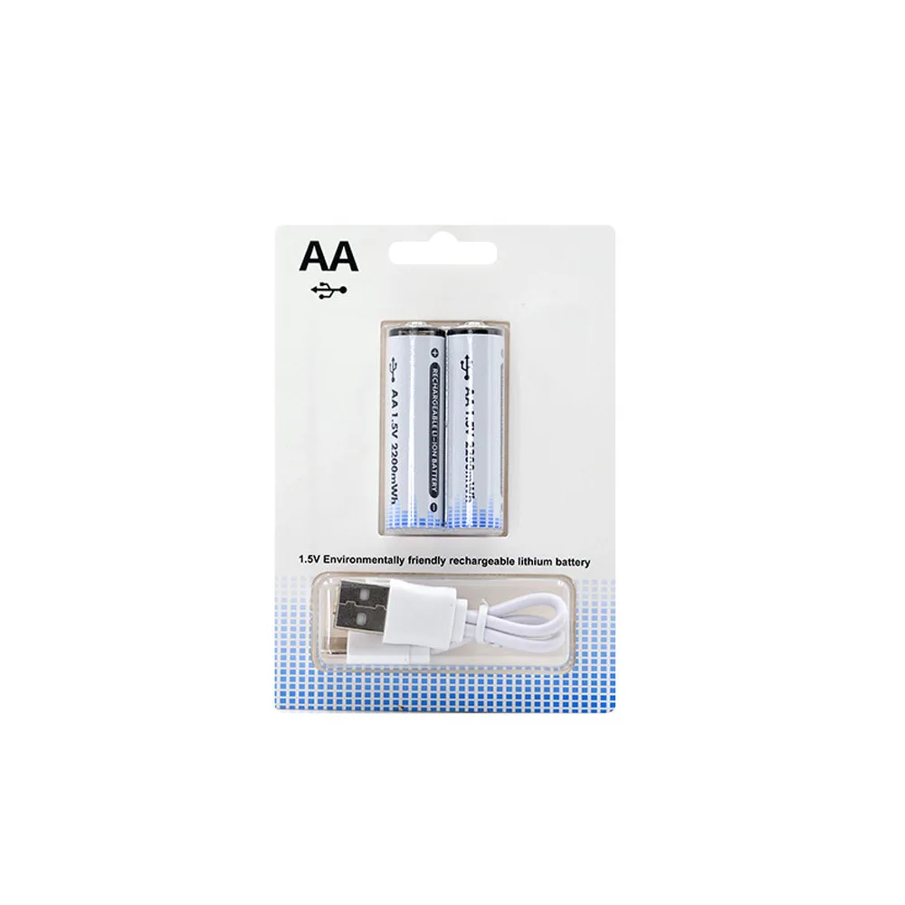 «name»: «2x Pila Batería de litio recargable por USB Tipo C 1.5V AA 2200 mAh»,